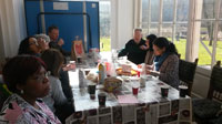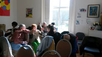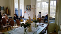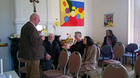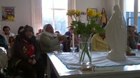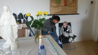 De dag begon met een goede duo samenwerking ter voorbereiding van de inloop waarbij koffie/thee werd klaargezet. Dat ging goed totdat er opeens geen stroom meer was. Schietgebedjes werden snel tot Moeder Maria opgezonden. Een verlengsnoer was een tijdelijke oplossing en al snel werd een kleine redder naar ons gestuurd die raad wist met een schakelaar.