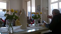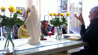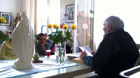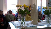 De tweede conferentie ging over het lijden, omdat we nog in de vastentijd zaten. Er werd wat voorgelezen uit het boek “Over de drempel van de hoop” (Paus Johannes Paulus II). Waarom is er lijden en verschrikkelijk dingen als de Holocaust? God wilde het lijden niet, maar door de zondeval kwam de dood en lijden. Ook over het lijden van Job werd er verteld. In zijn lijden vervloekte hij de dag dat hij geboren was, maar kwam tot inkeer toen Gods grootheid in de schepping tot hem doordrong en hij zegende God. Eigenlijk weet je niet waarom iemand lijdt. Job was een rechtvaardige man en het is niet altijd door de zonde zoals de Joden vroeger dachten. We mogen dus niet oordelen. In het leven moeten we proberen goede kruisdragers te zijn. Verder stonden we stil bij de 4de statie van het kruis: Jezus ontmoet zijn bedroefde moeder. Hiervoor werden de woorden gebruikt van een Italiaanse mystica Louisa Piccarreta. Het was een onbeschrijfelijke grote smart tussen twee geliefden die elkaar troostte en zegende.