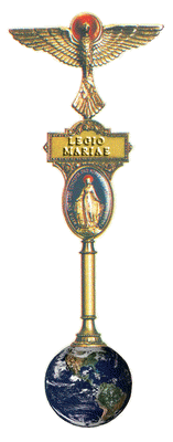 Het Vexillum is de standaard van het Legioen van Maria. Het is een aangepaste versie van de standaard van het Romeinse Legioen. De adelaar bovenaan is vervangen door een duif, het symbool van de Heilige Geest. De balk daaronder draagt de inscriptie ‘Legio Mariae’. Tussen de balk en de staf (verbonden met een roos en een lelie) zit een Wonderdadige Medaille. De staf staat in een wereldbol die vaak daaronder nog een vierkante basis heeft zodat hij op tafel blijft staan. Het design staat voor het idee dat de wereld zal worden veroverd door de Heilige Geest door Maria en haar kinderen.